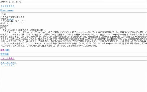 携帯でただ見るというだけではなく、ログインや新規登録にも対応していてPMも読めたりしてすごいのですが、このモジュールは「入れれば全部携帯対応」という魔法のモジュールではありません。Xmobile用のプラグインが存在していない、つまりXmobileに対応していないモジュールは省かれます。アクセスしても一切表示されません。なので、導入する前に自サイトで使っているモジュールに対応しているかどうか確認しておいたほうがよいでしょう。ざっと見た限り、ブログモジュールは「d3blog」「うぇブログ」「weblogD3」「WordPress ME」、フォーラムモジュールは「d3forum」「newbb」「xhnewbb」に対応しているようです。