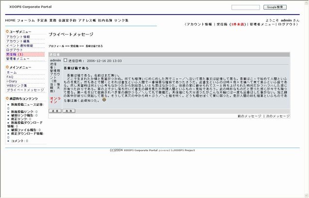 コメント  本家のXOOPSで使われているプライベートメッセージ機能(大元はwanikooさん作成のPM[Private Message]機能拡張Hack)を日本版XOOPSでモジュールとして使えるようにしたものです。