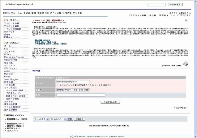 コメント | イベント開催を通知したり、人数制限を設けて参加者を募集したりできるモジュールです。申込みに必要な項目は自由に追加できますし、案内の掲載期間も決められます。目的通り、オフ会や新年会、忘年会の参加者募集などで使うと便利でしょう。 |